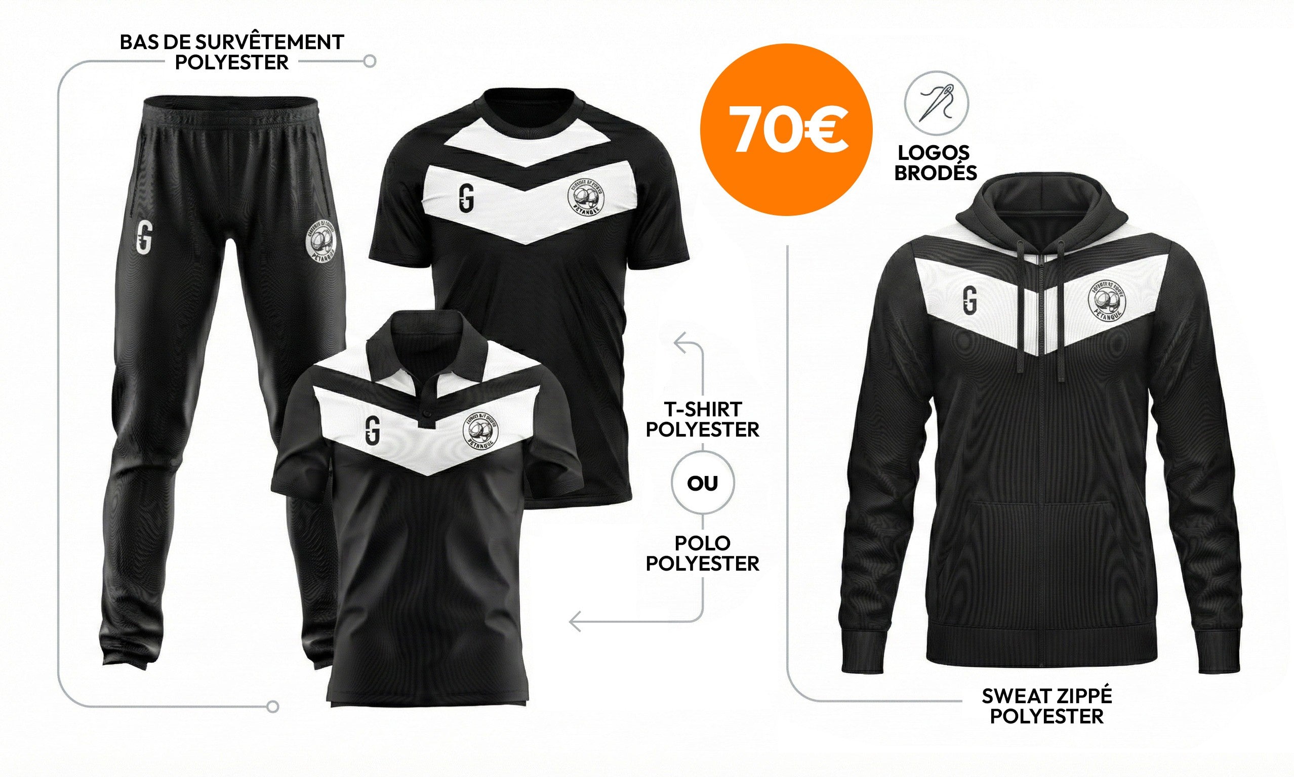 Ensemble 100% polyester, conçu pour durer, avec logos brodés pour une finition résistante et professionnelle. Seulement à 70€.